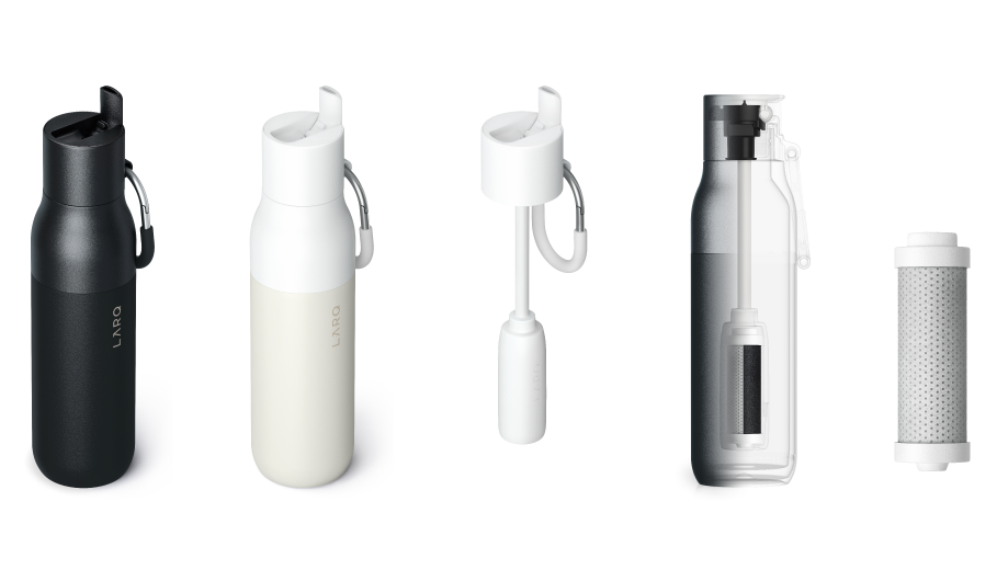 ボトルフィルターは、LARQ が開発した高性能なナノゼロフィルターとゼロ価鉄(ZVI)の二つの層でできた画期的なポータブル浄水器である。フィルターのろ過能力は、151 リットルまたは 2 カ月間使用可能で、同じ量のペットボトル水約 300 本分に相当。飲み口は、飲みやすさを追求した LARQ 独自の低圧