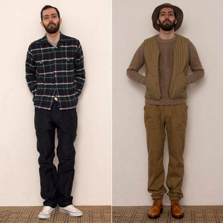 <strong>FUJITO|フジト</strong><br /><strong>2015-16年 秋冬コレクション</strong> Quilting Vest 3万1320円、3B Work Jacket 4万8600円、B.D Shirt 2万1600円、Fatigue Easy Pants 2万1600円、O/D Bush Hat 1万584円