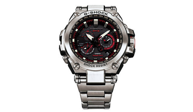 <p><strong>G-SHOCK MT-G</strong><br />ケース|ステンレススチール&樹脂<br />直径|58.8mm<br />厚さ|16.9mm<br />ムーブメント|クォーツ<br />機能|トリプルGレジスト(耐衝撃構造・耐遠心重力性能・耐振動構造)、タフソーラー(ソーラー充電システム/パワーセービング付き)、GPS受信、マルチバンド6(世界6局=日本2局・中国・アメリカ・イギリス・ドイツに対応した標準電波受信)、ワールドタイム(世界27都市/40タイムゾーン+UTC、サマータイム自動設定、ホームタイムの都市入れ替え)、ストップウォッチ、タイマー、時刻アラーム、日付・曜日表示、フルオートカレンダー、LEDライト(スーパーイルミネーター/残照付き)、針位置自動補正、機内モード<br />ブレスレット|ステンレススチール&樹脂<br />防水|20気圧<br />価格|16万円<br /></p>