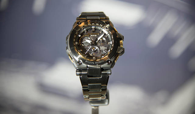 <strong>G-SHOCK MT-G</strong><br />ケース|ステンレススチール&樹脂<br />直径|58.8mm<br />厚さ|16.9mm<br />ムーブメント|クォーツ<br />機能|トリプルGレジスト(耐衝撃構造・耐遠心重力性能・耐振動構造)、タフソーラー(ソーラー充電システム/パワーセービング付き)、GPS受信、マルチバンド6(世界6局=日本2局・中国・アメリカ・イギリス・ドイツに対応した標準電波受信)、ワールドタイム(世界27都市/40タイムゾーン+UTC、サマータイム自動設定、ホームタイムの都市入れ替え)、ストップウォッチ、タイマー、時刻アラーム、日付・曜日表示、フルオートカレンダー、LEDライト(スーパーイルミネーター/残照付き)、針位置自動補正、機内モード<br />ブレスレット|ステンレススチール&樹脂<br />防水|20気圧<br />発売日|9月18日<br />価格|16万円(税抜)<br />
