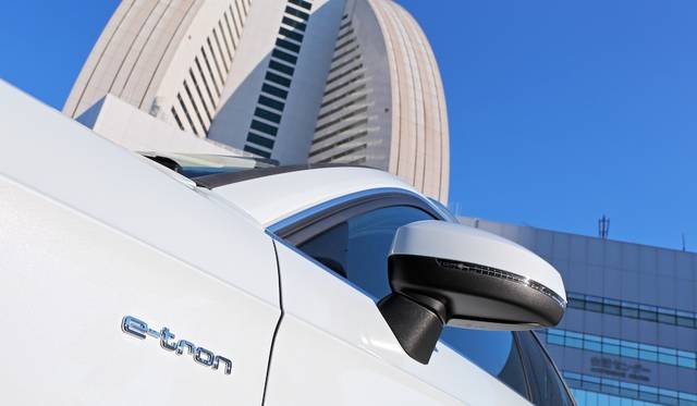 標準でe-tron専用デザインの17インチホイールを装備(写真はSライン装着車のため18インチ)