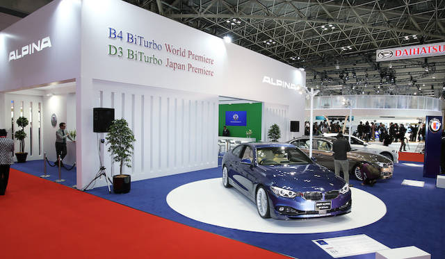 Gallery アルピナ 東京モーターショー速報|Alpina Alpina|アルピナ東京モーターショー速報アルピナ Text by HORIGUCHI Yoshihiro(OPENERS)Phorographs by ARAKAWA Masayuki & OPENERS 4シリーズベースの「B4ビターボ」をワールドプレミア アルピナは、東京モーターショーにおける展示としては過去最大となる6台を出展。 ワールドプレミアは発売されたばかりの4シリーズをベースにした「B4ビターボ クーペ」。3.0リッター直列6気筒エンジンは、最高出力301kW(401ps)、最大トルク600Nmを誇る。日本での価格は1,039万円。最大トルク700Nmを発揮するディーゼルエンジンを搭載した「D3ビターボ リムジン」はフランクフルトモーターショーにつづく、ジャパンプレミア。おなじく、マイナーチェンジした「B5ビターボ リムジン」も日本初公開だ。 そのほか、「B3ビターボ ツーリング」「D5ビターボ リムジン」「B6ビターボ クーペ」を並べている。" title="alpina_b4_coupe_101" data-src="/galleries/images/000/172/835/medium/c6e2d3a8-dbd2-4ef7-958e-db139b448b45.jpg"> prev next / close アルピナ 東京モーターショー速報|Alpina