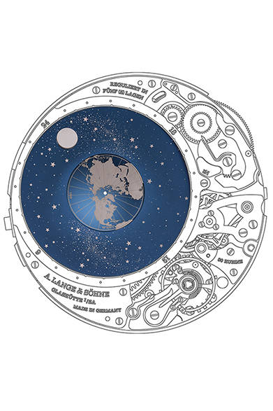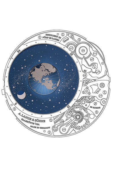 Gallery A. LANGE & SÖHNE|ケースの裏側に画期的な天文機構を搭載 prev next / close A. LANGE & SÖHNE|ケースの裏側に画期的な天文機構を搭載 Back to Article