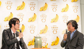 <strong>unifrutti|ユニフルーティー</strong><br />「地球育ち しあわせバナナ®」<br />「地球育ち しあわせバナナ®」新発売を記念して、佐藤オオキ氏と石川次郎氏のトークショーが開催された。
