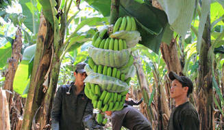 <strong>unifrutti|ユニフルーティー</strong><br />「地球育ち しあわせバナナ®」<br />バナナの実がついたら、バナナにキズがつかないように、また虫や寒さからバナナを守るために、全部のバナナの房に「袋がけ」を一つひとつ人の手により丁寧にほどこす。