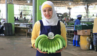 <strong>unifrutti|ユニフルーティー</strong><br />「地球育ち しあわせバナナ®」<br />現地の選果場にて丁寧に選別・水洗いされる。
