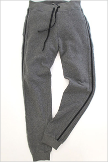 スウェット風のニットパンツがキーアイテムとして登場するなど、デザインごとに細かいディテールが異なっていたり、内部に柄生地などを用いるなど、大人な遊び心も感じられる。