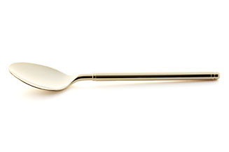 ゴールド(24Kメッキ)のコーティングも、当初からこだわっていました。みなさんご存知のように、美しい! 製造は、洋食器で有名な新潟県の燕市の工場にお願いしました。立ち会ってつくったんですよ。あーでもないこーでもないと注文をつけて(笑)。おかげで満足いくものができました。磨きの技術が素晴らしく、鏡のような輝きです。