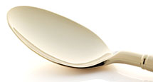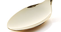 スプーンの裏側で、ほおなど、たたいて痛くない部分を内側から外側にやさしくパッティング