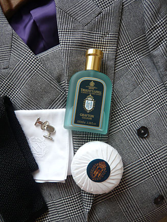 とにもかくにも「素敵なオジサマ」のスタイルこそが、深みがあって、クラシックの勉強になるのです。もっというなら僕のスタイルの根元なのであります。現在、編集している『オーシャンズ』という雑誌の到達地点も、きっと「素敵なオジサマ」になることなのだと思います。話しによると、父が小学生だったころ、どんなに暑い夏の参観日でも、祖父は真っ白な麻のスーツに身をつつみ、つまみのパナマハットをかぶり、かならず着物に身をつつんだ祖母の手をとって、ゆっくりと現れたのだとか。いつかは僕も「素敵なオジサマ」になりたいものです。このトゥルフィット&ヒルの「グラフトン」との出会いで、余計にそう感じました。「素敵なオジサマ」をめざす方がいらっしゃいましたら、ぜひトゥルフィット&ヒルの「グラフトン」の香りを試してみてはいかがでしょうか? きっと僕が言っていることがわかっていただけると思います。