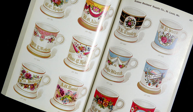 「KOKEN BARBER'S SUPPLY COMPANY」のカタログに紹介された美しいシェービングマグ。アメリカにはマグ・コレクターの団体まであるという
