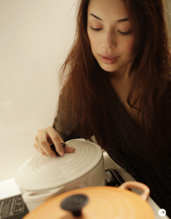 2、鍋にだし汁を入れて煮立て、茸類を加え、汁に茸の旨味を出す。
