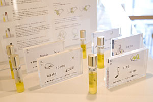 いまのところ、いちばん人気は「24:45(ニイヨンヨンゴ)」です。ラベンダーとバニラのやすらぐ香りが、幅広い層に受けているようですね。私自身は、もちろん全部好きですが、なかでもとくにお気に入りなのが「7:15(ナナイチゴ)」。ひのきや柚子などのジャパニーズセンスの香りは、沈静でありながら刺激的。どちらかというと大人っぽい香りなので、男性にもおすすめです。
