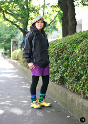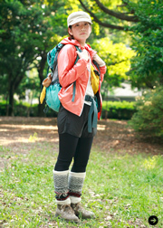コーディネート|ジャケット「NORTHFACE」、インナー「saucony」、スカート「mont-bell」、タイツ「AIGLE×CW-X」、ソックス「solmate socks」、シューズ「SALOMON」、バックパック「AIGLE」、ハット「NORTH FACE」