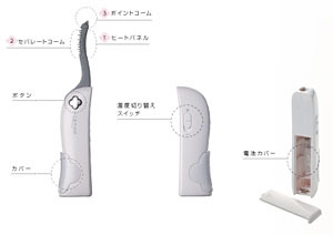 マスカラを塗ったあとのまつ毛に押し当てることで、根もとから放射状に持ち上げるヒートパネルをコームの反対側に搭載。ヒートパネルは、“Hi=カールをつけて自然な仕上がり”と“Low=まつ毛の根もとに押しあててマスカラを乾かしながらカールアップ”の2段階から選ぶことができる。
