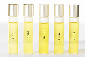 一日に何度も使ってほしいとの願いから、朝起きたとき、仕事中、アフターファイブ、寝る前など、さまざまなシーンにあわせて使いわけできるよう、ひとつひとつにちがったエッセンシャルオイルが配合されている。