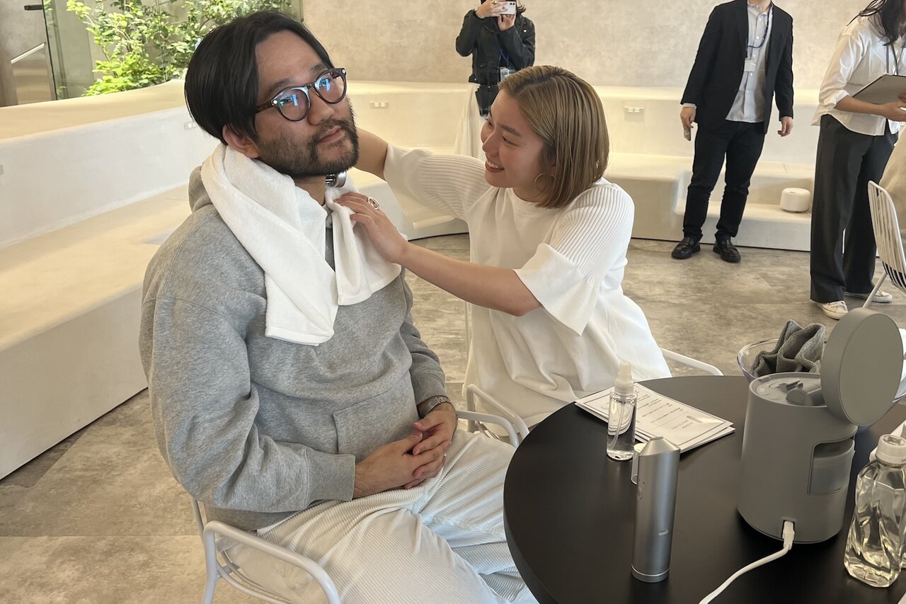 こうした調査結果を得て、サロニアでは2人でスキンケア・ヘアケアに取り組むことを「スキンケアシップ」と名付け、夫婦・パートナー同士のコミュニケーションをどのように活性化するかを検証するイベントを開催。今回は29歳から31歳までのご夫婦とカップルの3組を招待。表情筋や頭筋を刺激する「EMSリフトブラシ」、水流と吸引のW洗浄で毛穴汚れをケアする「アクアピーリングデバイス」、グッドデザイン賞を受賞した「ピュアブライトスチーマー」の3機種を用意して、それぞれ試していただいた。