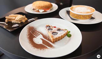 入り口に設けられた高さ4mのクリスマスツリーは、ランボルギーニをイメージしたオーナメントでデコレートされ、来場者を華やかに迎えてくれる。現代的で洗練されたカフェ店内では、イタリアンスタイルのランチ、ディナーメニューが振る舞われるほか、ランボルギーニコレクションを集めた限定ギフトショップも併設される。