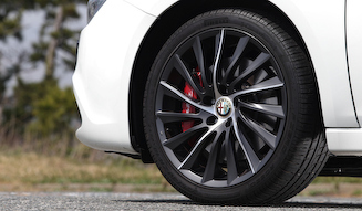 足まわりはクアドリフォリオ ヴェルデ専用のスポーツサスペンションと、シリーズ中もっとも大きな225/40R18サイズのタイヤを、専用のホイールとともに装着。