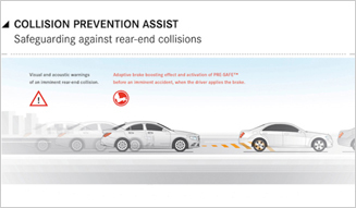 ・ディストロニック・プラス:先行車を一定間隔で自動的に追従し制動までおこなう