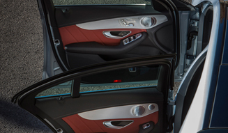 インテリアの仕上げはさらに圧巻だ。ドアトリムやセンターダッシュボード&コンソールのデザインおよび仕上げクオリティは、まさに1クラス上のできばえ。タッチパッド付きのコマンドシステムなど、最新の操作系もそなわって、現行Eクラスを完全に凌駕した。もちろん、安全に関する装備は、上級モデルと同一だ。
