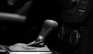 ナッパレザーとブラックバードアイメープルウッドが奢られたインテリア。セミバケットタイプのスポーツシートが、コーナリング時にもしっかりカラダを支えてくれる。ステアリングホイールはAMG専用デザインの本革巻き3スポークで、7段ATをマニュアル感覚でシフトできるパドルが付く。