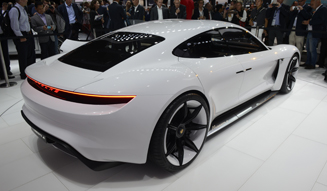 「スポーツカーとEVは水と油のようにとらえられてきましたが、それを融合させることに成功しました」。ポルシェAGのマティアス・ミュラー社長の言葉とともに、ショー会場でベールを脱いだのは、「ミッションE」と名づけられた4ドアのコンセプトモデルだった。