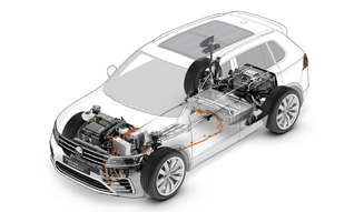 VWが記者発表で存在感を強調したのは、ティグアンGTEだ。すでに「パサート」と「ゴルフ」で知られるGTEはプラグインハイブリッドを意味するサブネームである。直噴ガソリンターボエンジン(115kWの1.4 TSI)と電気モーターにより前輪を駆動。160kWのシステムパワーを発生する。「E モード」を使えば、完全電動で50kmをカバー。