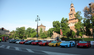 古城で有名なミラノのカステッロ広場がグランドツアーのスタート地点だ。この日のために、広場周囲のランナバウトは半ば通行止めで、ふだんはミラノっ子たちが忙しく駆けまわる道が、臨時の“猛牛パドック”になっている。おかげで、周囲は大渋滞……