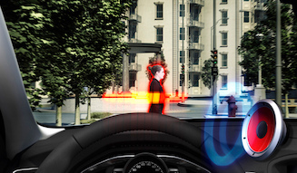 車両本体のみならず、インフラの整備も不可欠とはなるものの、これも次世代安全技術の柱として欠かせないとされるもの。前方の信号が赤から青に変わるタイミングで通過するにはどの程度の速度をキープすれば良いかのアドバイスや、前方の見通しの悪いコーナーの先に故障車が停車中である旨の事前ワーニング。