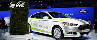 フォードはコカコーラと共同で、ペットボトルの原料を素材にクルマの内装材を作る「プラントボトル・テクノロジー」を開発中だ。この技術をもちいた研究車両「フォード フュージョン エナジーが、LAモーターショーで初公開された。