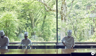 『arcana izu』のもうひとつの魅力がレストラン『lumière arcana izu(リュミエール アルカナ イズ)』。宿泊棟とは別に独立したレストランは、高い天井と大きなガラス窓が特徴で、はじめて足を踏み入れたひとはたいてい驚きの声を上げるとか。