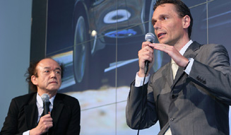 「ものすごく綺麗なクルマでしょう?」。クルーガー社長のセリフを鈴木氏が通訳し、質問を投げかけるかたちで対談は進行した。