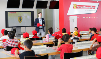 また、このイベントには、地域貢献活動の一環として、富士スピードウェイのある静岡県小山町の小学校に通う子どもたち約40名が特別に招待された。注目は、次世代を担う子どもたちにフェラーリの魅力とモータースポーツの楽しさを伝えるため、フェラーリ・ジャパンのリノ・デパオリ代表取締役社長自らがフェラーリについての特別講義をおこなったこと。