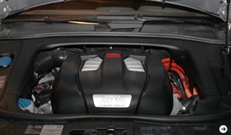 当初はトヨタから供給されると噂されていたポルシェのハイブリッドシステムだが、結局彼らが選んだのはフォルクスワーゲン、そしてアウディと共同でまったく別のシステムを開発するという道だった。その概要は、V型6気筒3.0ℓのスーパーチャージャー付きエンジンと、8速ATのあいだに電気モーターを挟み込むというもの。バッテリーは実績のあるニッケル水素タイプを荷室のフロア下に搭載している。