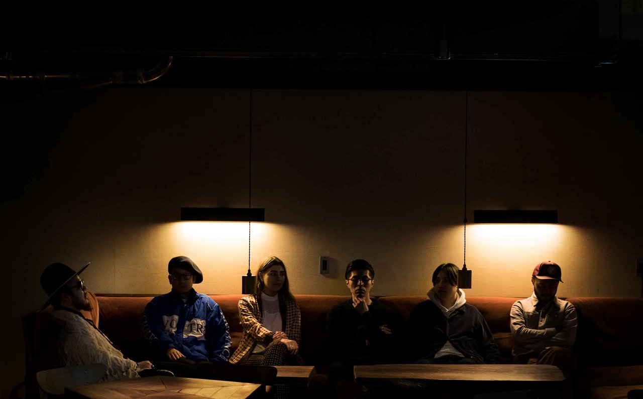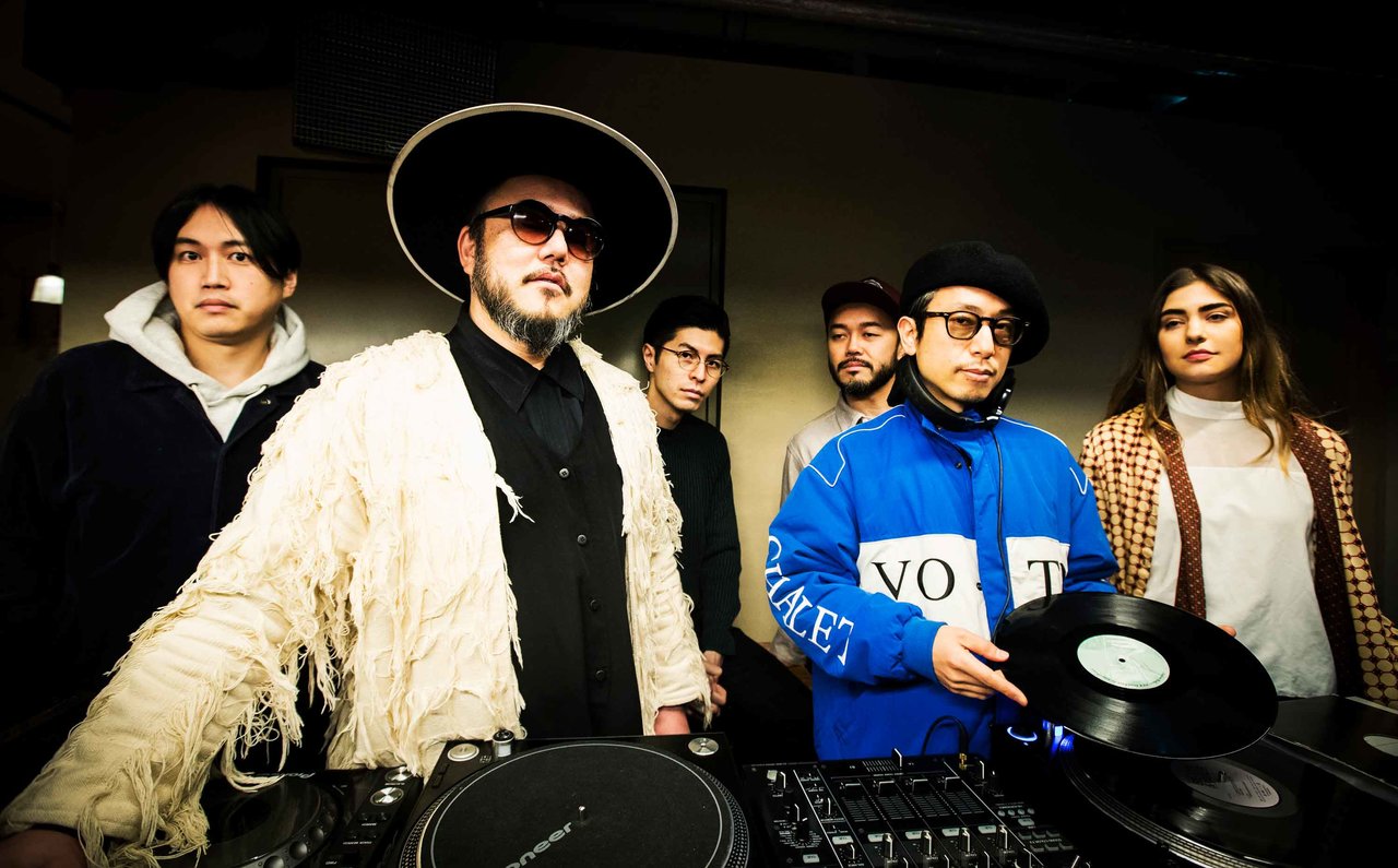 その日は社長の声かけで、東京・日本橋大伝馬町の一角にあるホステル、カフェ、バー&ダイニング「シタン」でDJ仲間と合流。下のカットでいえば左からHyota Otani、社長、MIDORI AOYAMA、Sauce81、DJ KAWASAKI、Chloé Julietteといった面々。シタンB1のバー&ダイニングにはDJブースもあるから、いつしかレコードを手に話が弾む。