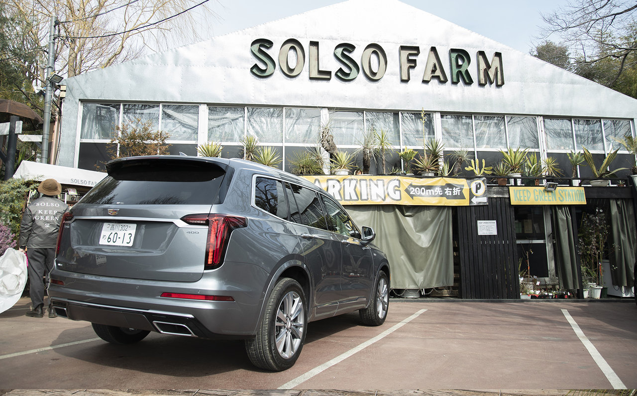 藤井さんがステアリングを握り、まずキャデラック XT6の鼻先を向けたのは「SOLSO FARM」。植物・ランドスケープデザイン・施工のプロフェッショナル〝SOLSO〟が週末限定でオープンしているショップだ。