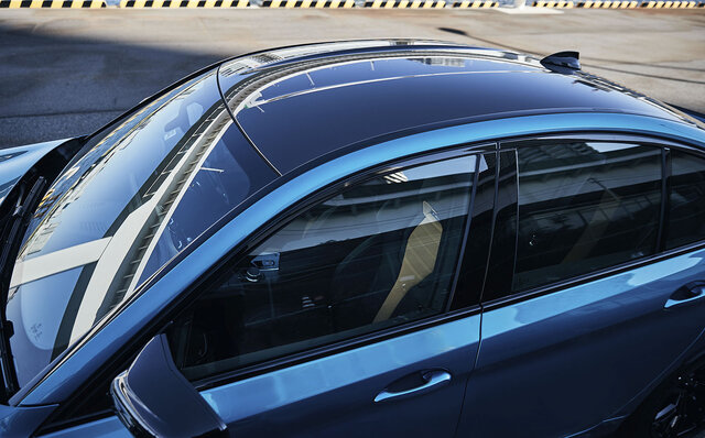 八木「ルーフに軽量化と低重心化のためにカーボンが採用されていていることからも、M5のメインステージがサーキットであることが分かります。カーボンのルーフはデザイン的にもキレイですね」
