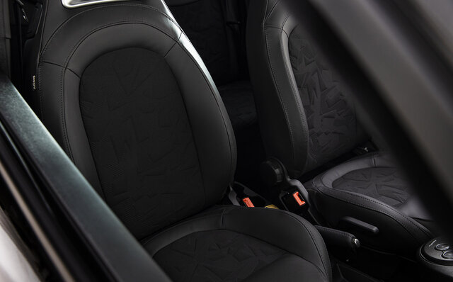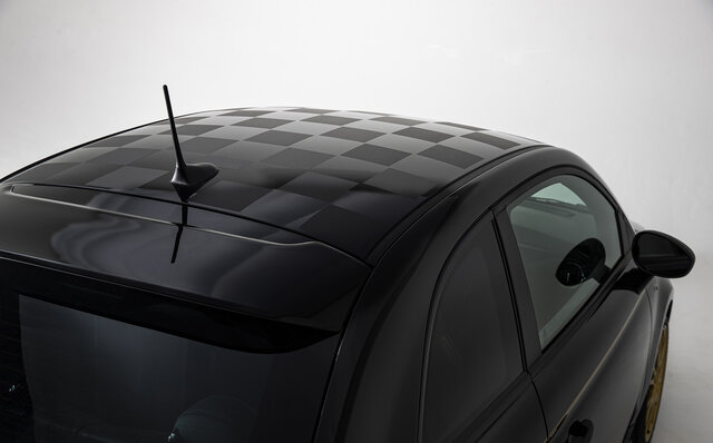 さらに、ルーフには、往年のアバルト車を連想させるチェッカード模様がマットブラック仕上げで。専用のエンブレムにサイドステッカーも、と外観の見どころが多い。