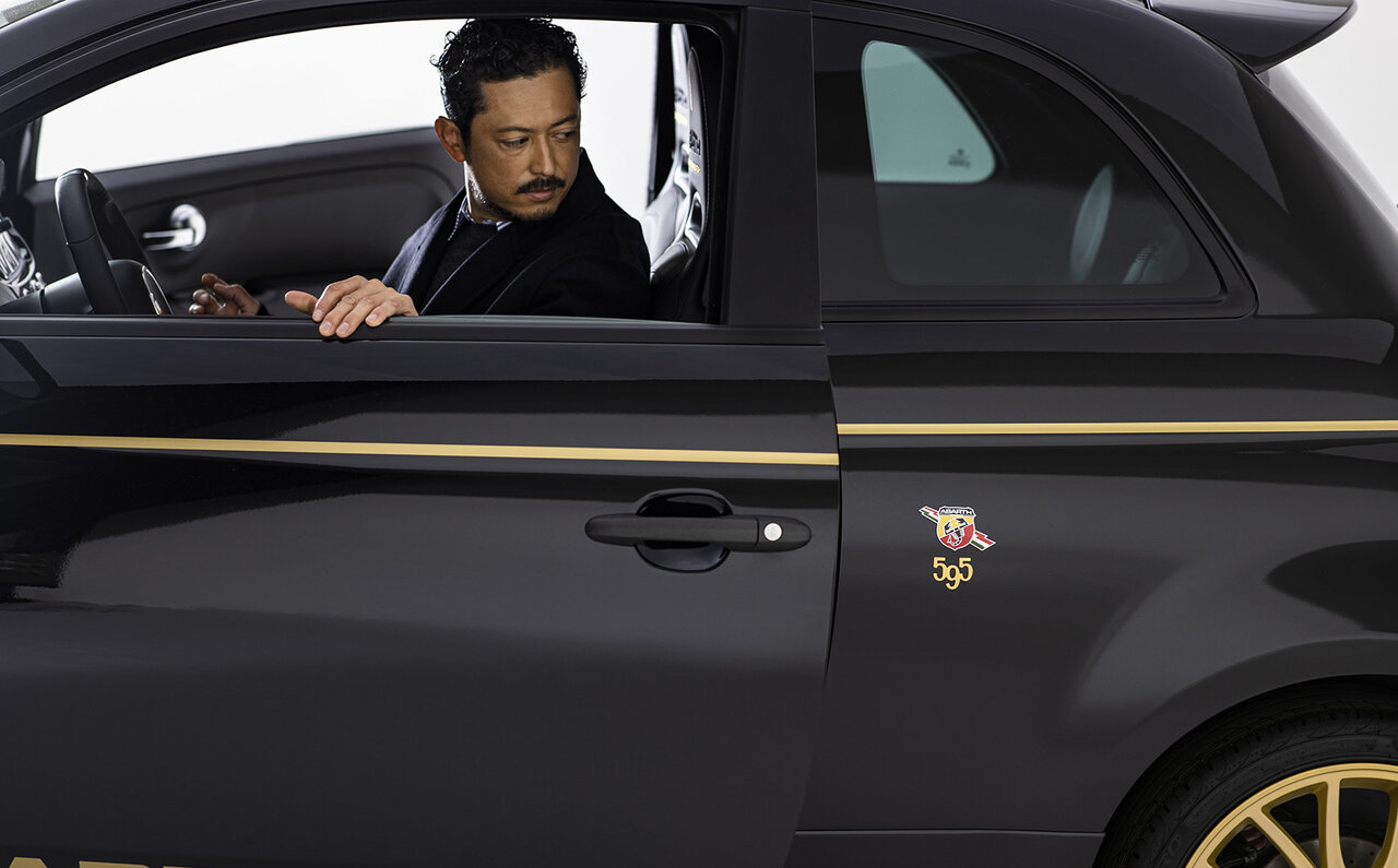 2020年11月発売の「Abarth 595 Scorpioneoro」は、専用車体色と数々の特別装備により、内外装をスタイリッシュに仕上げた限定車。大人の男が乗るとかなりサマになることを、俳優の池内博之氏が証明してくれた。