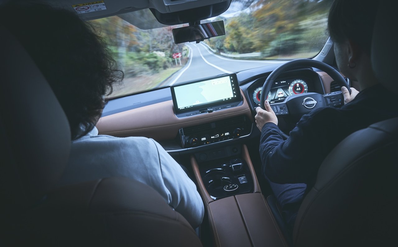 箱根ターンパイクに到着すると、島下さんにそう促されて、窪川さんはエクストレイルのドライバーズシートに収まった。e-4ORCEを搭載したエクストレイルで、ワインディングロードを走るのは初めてだ。