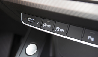 アウディドライブセレクトで、パワーステアリングのギア比、アクセル開度に応じたエンジンレスポンス、変速タイミング、クルーズコントロール、(オプションによっては)減衰力可変機構を備えたサスペンションの制御マップ、そしてオートエアコンの働きが変更できる。モードは、コンフォート、ダイナミック、エフィシエンシー、オート、そしてインディビデュアルの5つが設定されている。