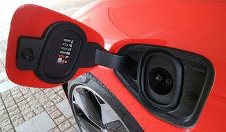 充電は、フロントフェンダー左右の給電口で行う。最大7kWのAC普通充電と、日本では50kWのCHAdeMO規格急速充電に対応。0パーセントから80パーセントまで50kWで85分、7kWなら12.6時間で100パーセントまで充電できると公表された。