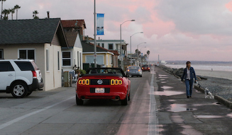 オレンジカウンティからパシフィック・コースト・ハイウェイを南に下るという、海沿いのルートを走る。この道沿いの左右には、サーフショップやオシャレな小物をあつかうカリフォルニアらしいショップが軒をつらねていた。こうした道の流れに身を委ねるように走るだけで、ドライブがたのしいのもカリフォルニアならでは。潮まじりの風は、乾いた空気のなかでは心地よい。