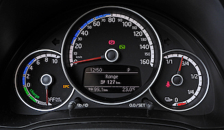 満充電後の航続距離は、EUのテストで160kmとフォルクスワーゲンでは発表している。たしかにエアコンをフルに作動させながら速いペースで走っても、バッテリー残量計の針の動きはいたってゆるやかだ。