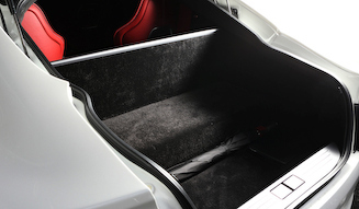 リアシートはやや高めの着座位置を確保し、左右にきっちりとわけられたセパレートデザインである。正直ボディサイズを考えるとレッグスペースは最小で、背もたれの角度は起きすぎているが、V12をフロントミッド搭載したトランスアクスルのスポーツカーと考えれば、我慢できるはずだ。そもそも恒常的にリアシートを使用する目的で、ラピード Sを購入しようと思うユーザーはいないはずなので、こうした割り切りは潔い。リアのシートバックは前方に倒れ、荷室をほぼフラットにし(といってもシートバックの形状がバケットタイプなので凹凸は出てしまうが)、容量を拡大することもできる。