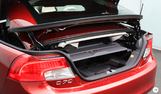 オープン走行は気持ちがよく、サイドウィンドウを下げて高速道路を走っても、前席にいるかぎり風の巻き込みがわずらわしいと思うことはない。トップを上げてクローズ状態にすると、排気音、吸気音ともに侵入は抑えられていて、トップからの風切り音も低いレベルで、静粛性が高くなる。やはり優雅に乗るクルマとして開発されたという感がひとしお。オーディオもオプションで910ワットの14スピーカーを備えたシステムが選べたりするので、気持ちよく乗れるクルマを求めているひとには、C70はきっと満足がいく選択になると思う。おそらく17インチタイヤがお薦めだが。