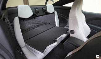 ただし、快適なのは前席だけ。後席は完全に補助席だ。筆者の場合、身長177cmの自分の体格に合わせた状態で乗り込むと、足を開いてもなお、膝などそこここがつっかえるし、頭を起こせず顔はずっと下を向いたままとなってしまう。普段は荷物置き場、あるいはベビーシート固定用と思っていたほうがよさそうだ。