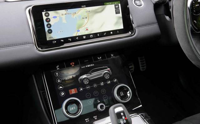 またインフォテイメント関連はヴェラールなどの上位モデルと同様、10インチの高解像度スクリーンをダッシュボード上とセンターコンソールの2カ所に配した「Touch Duo Pro(タッチ・デュオ・プロ)」が、ファーストエディションとHSE、SEグレードには標準装備される。