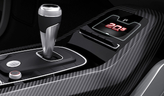 リアアクスルの前に縦置きされるのは、新開発の5リッターV10 TDI。このパワフルなツインターボ ディーゼルエンジンは、400kW(544ps)以上の最高出力をもち、わずか1,500rpmから1,000Nm(102kgm)のトルクを発生する。エンジンのうしろにマウントされた強化型の7段Sトロニックが、クワトロ ドライブ トレインにトルクを伝達する、アウディのお家芸といえるフルタイム4WDシステムを採用している。